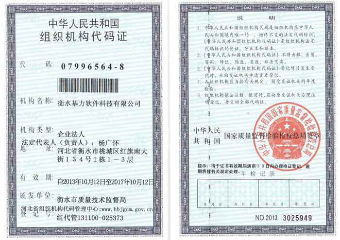 衡水基力软件科技有限公司企业法人营业执照(正本) 衡水基力软件科技有限公司企业法人营业执照(副本) 衡水基力软件科技有限公司税务登记证(国税正本)衡水基力软件科技有限公司税务登记证(国税副本) 衡水基力软件科技有限公司税务登记证(地税正本) 衡水基力软件科技有限公司税务登记证(地税副本) 衡水基力软件科技有限公司组织机构代码证(正本) 衡水基力软件科技有限公司组组织机构代码证(副本)